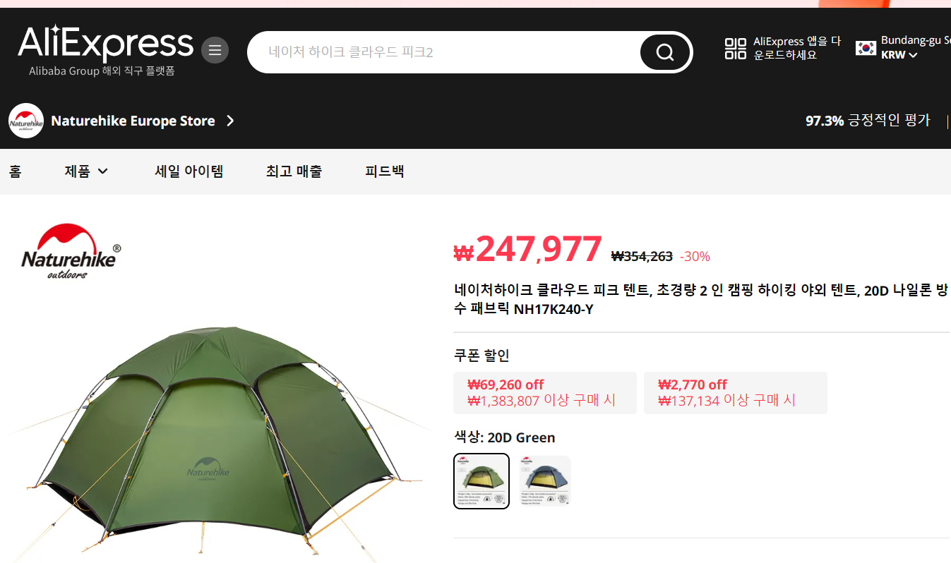 제가 네이쳐 하이크의 클라우드 피크2 텐트를 직접 구입해서 선자령, 덕적도, 굴업도에서 비박해 보고 느낀점을 올립니다..