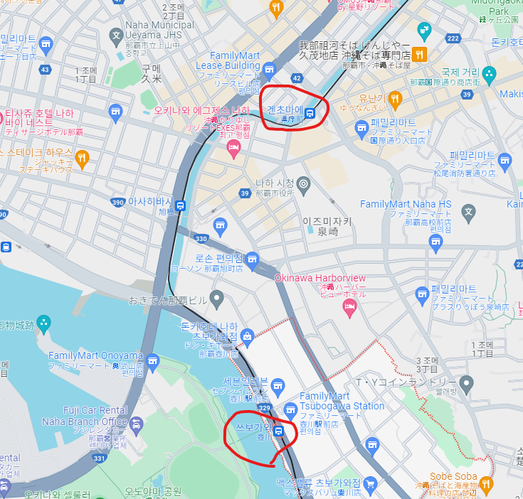 나하공항역에서 쓰보가와 역까지는 네 정거장이고요..
